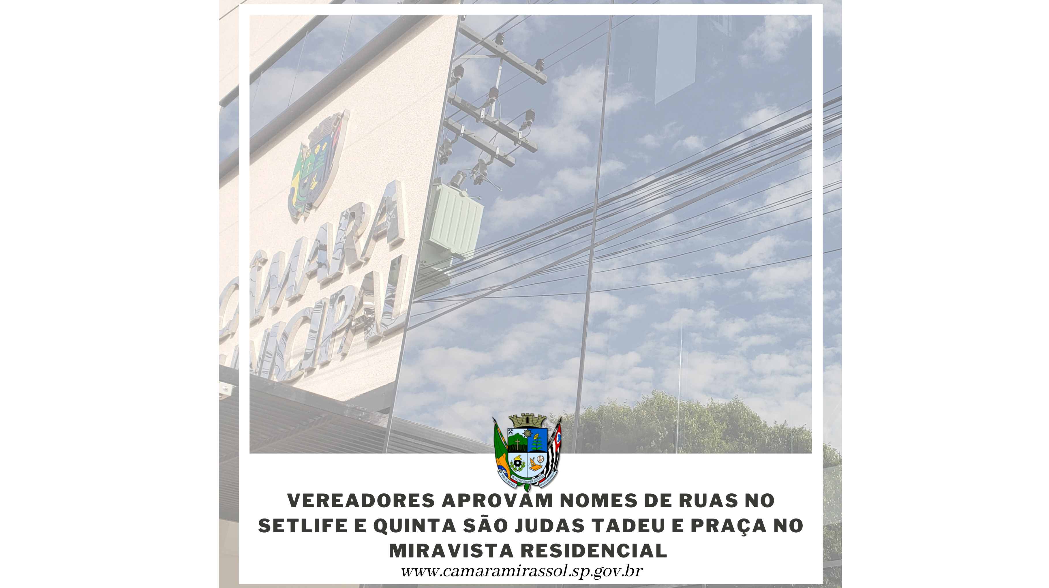 Leis aprovadas dão nomes a ruas e uma praça em MirassolOs vereadores da Câmara de Mirassol aprovaram na 16ª Sessão Ordinária três projetos de lei que dão nome a ruas e uma praça. Os endereços estão localizados nos bairros Setlife, Quinta São Judas Tadeu e Miravista Residencial....