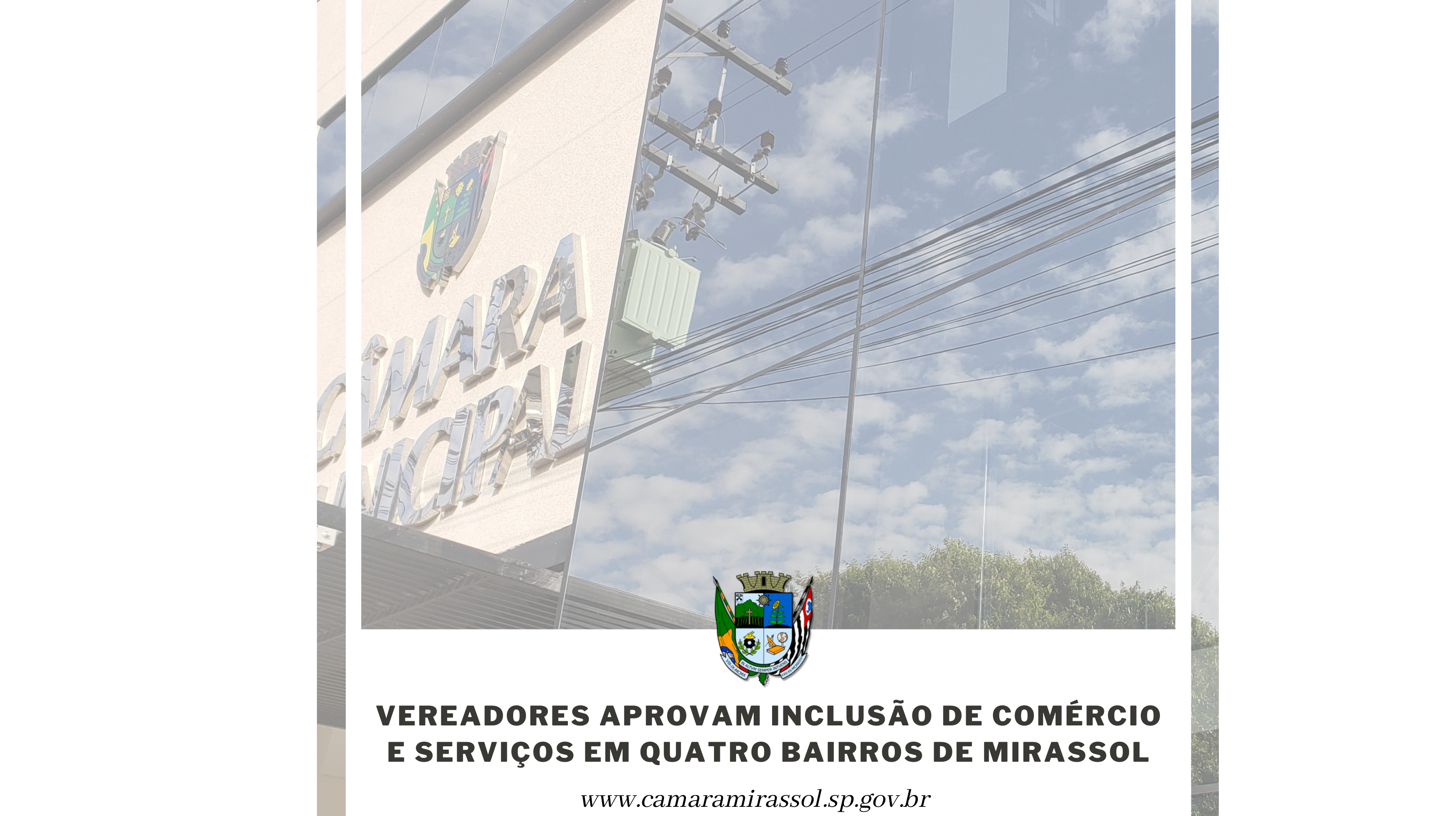 Vereadores aprovam inclusão de comércio e serviços em quatro bairrosCom a aprovação de cinco projetos de lei, na última sessão ordinária, a organização de quatro bairros de Mirassol poderá ser alterada. Em áreas específicas, estará permitida a instalação de estabelecimentos comerciais e de serv...