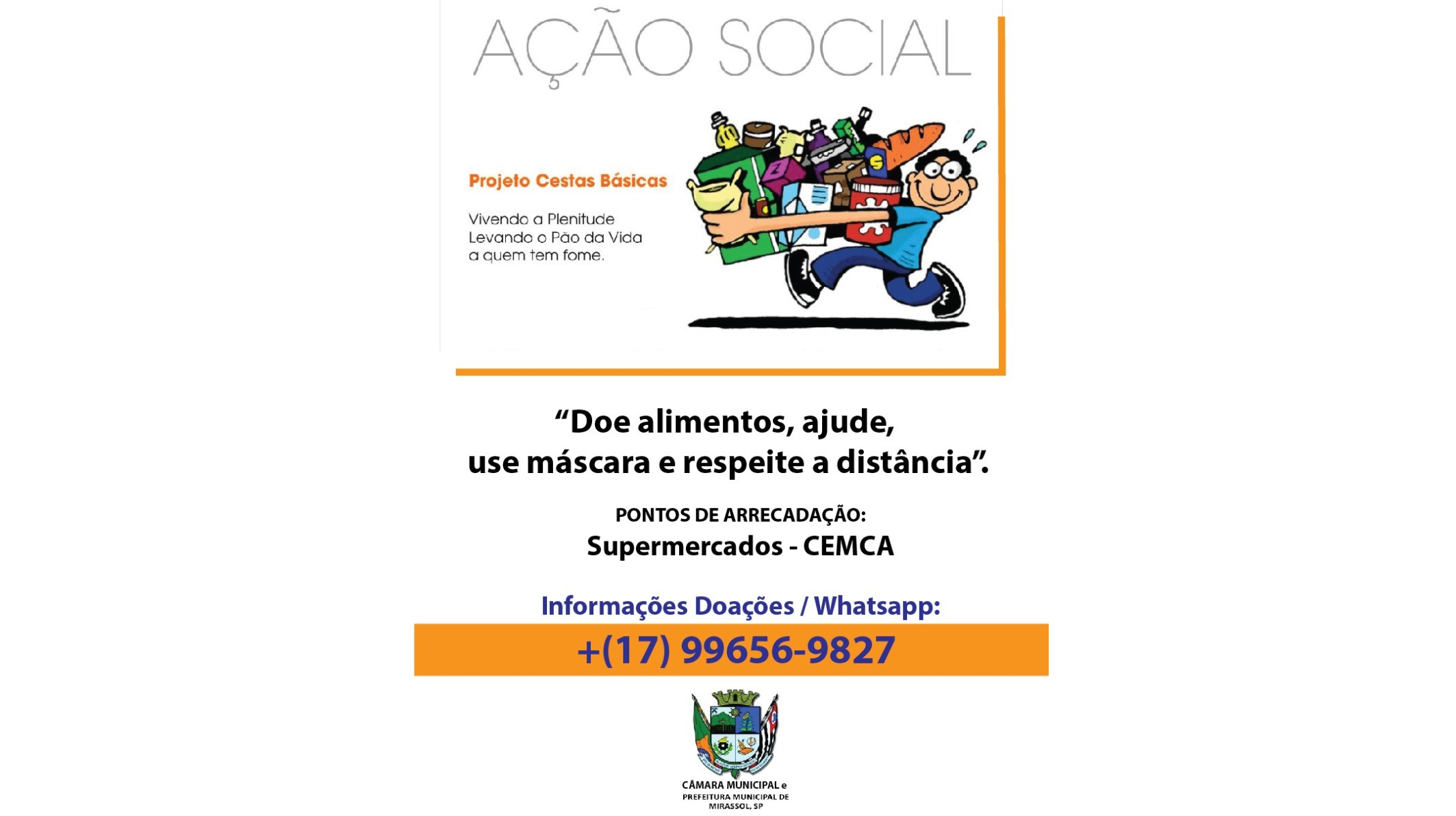 Projeto "Cestas Básicas" é lançado pela Câmara MunicipalA Câmara de Mirassol, em parceria com o Departamento de Ação Social e supermercados da cidade, dá início nesta semana a uma campanha de arrecadação de alimentos. Para o Projeto “Cestas Básicas”, as doações serão direcionadas pa...
