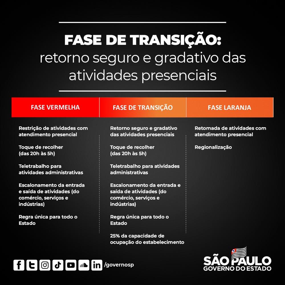 A transição está dividida em dois períodos, combinando regras das fases vermelha e laranja. Essa alteração terá validade até a próxima atualização do Plano SP, que acontece a partir do dia 1° de maio.